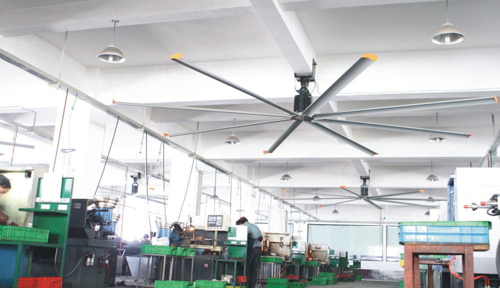 我公司生產(chǎn)的大型工業(yè)吊扇直接懸掛在廠房屋梁下,風(fēng)力柔和,能加快車間空氣流通,有效降低車間內(nèi)溫度,改善車間空氣環(huán)境質(zhì)量,有利于員工的身體健康。